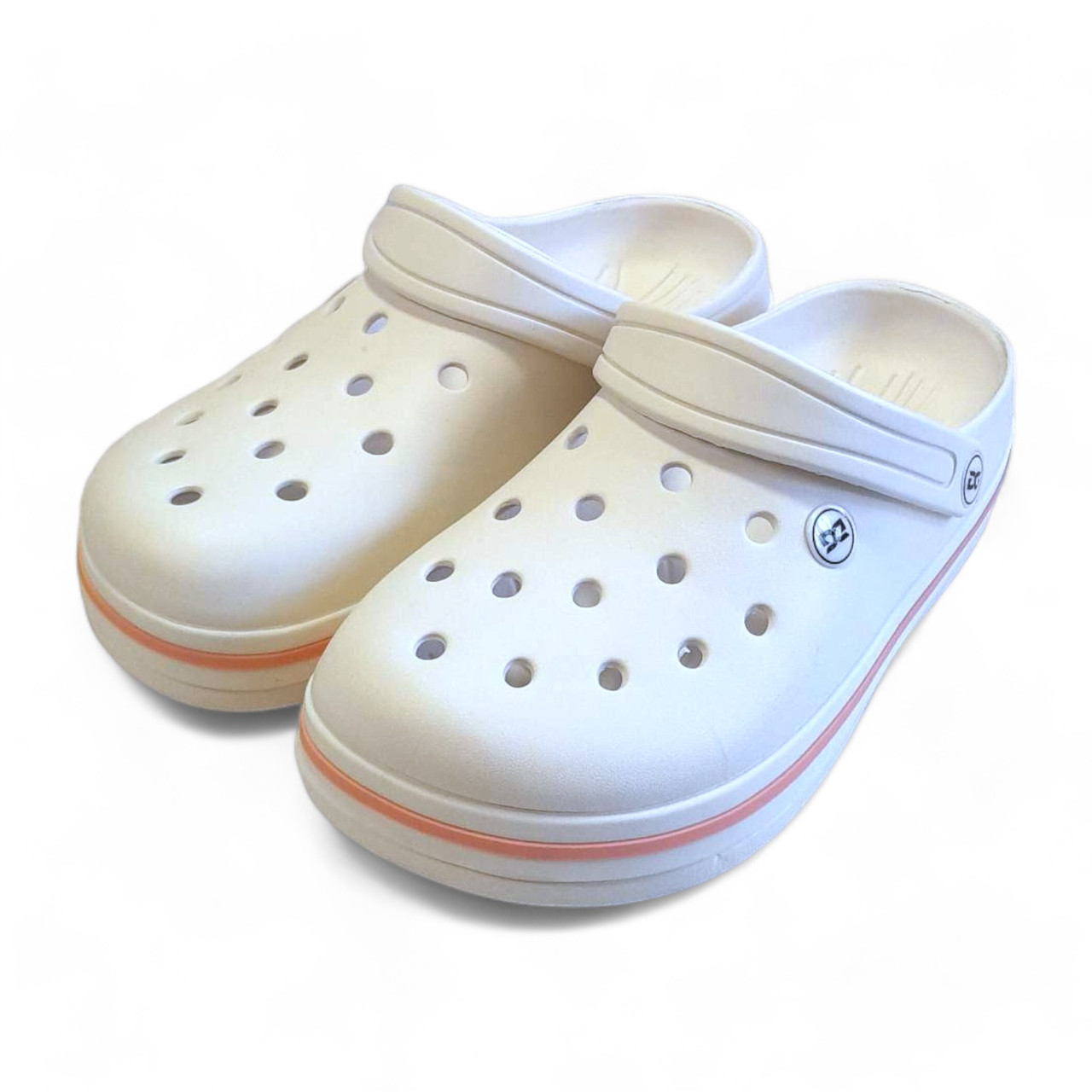 Крокси жіночі Dago білі з пудровою стрічкою (DG-418)