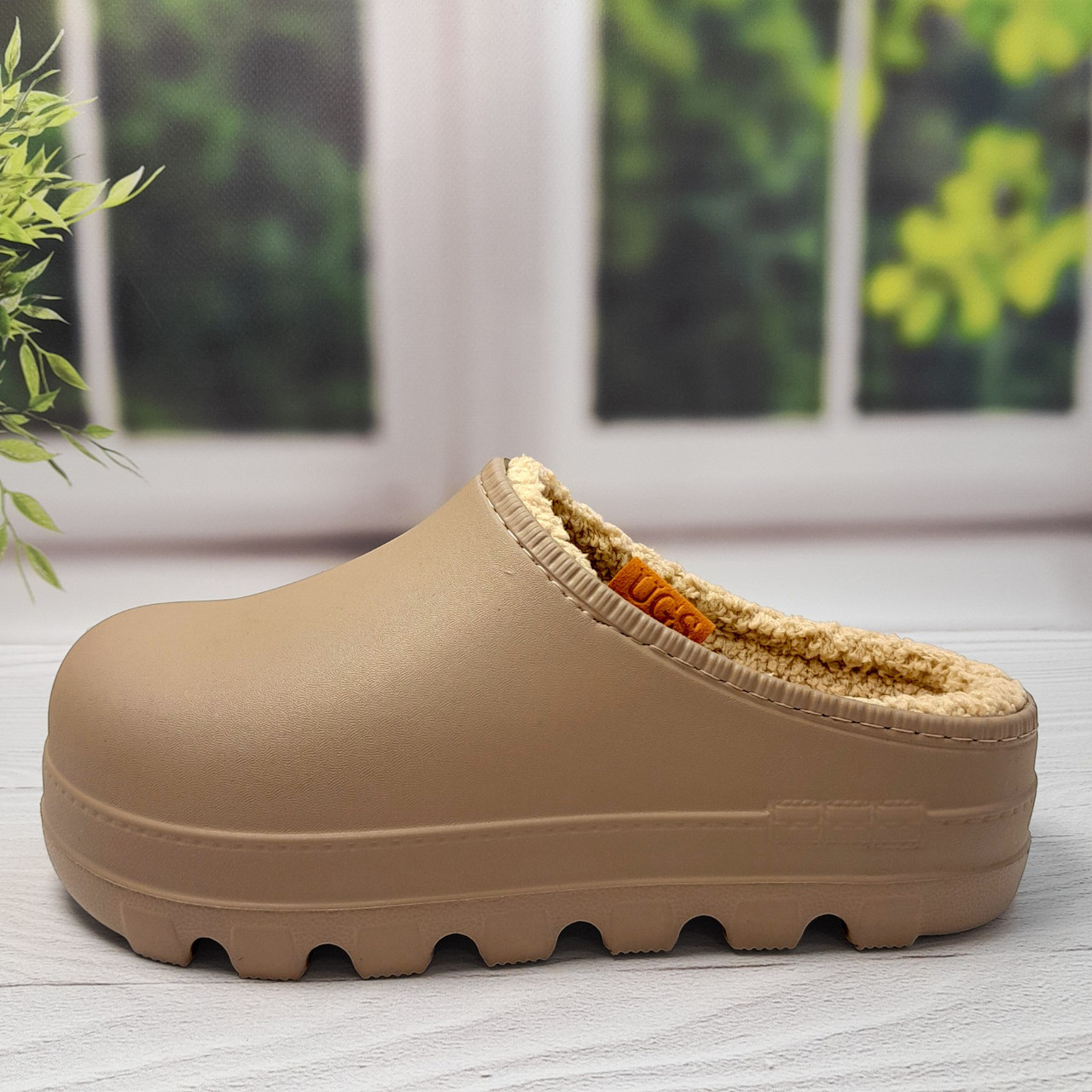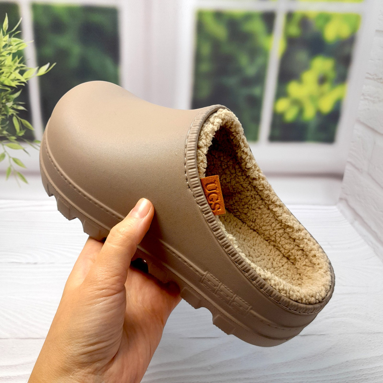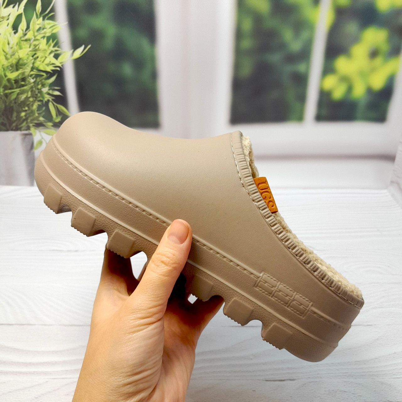Стильні жіночі сабо з утепленням для міста та дому. Виготовлені з легкого матеріалу EVA. Модна висока платформа (3,5-4 см) та міцна ребриста підошва. Внутрішня частина з якісного штучного хутра, що не линяє. Ідеальні для щоденної носіння вдома, прогулянок або роботи.