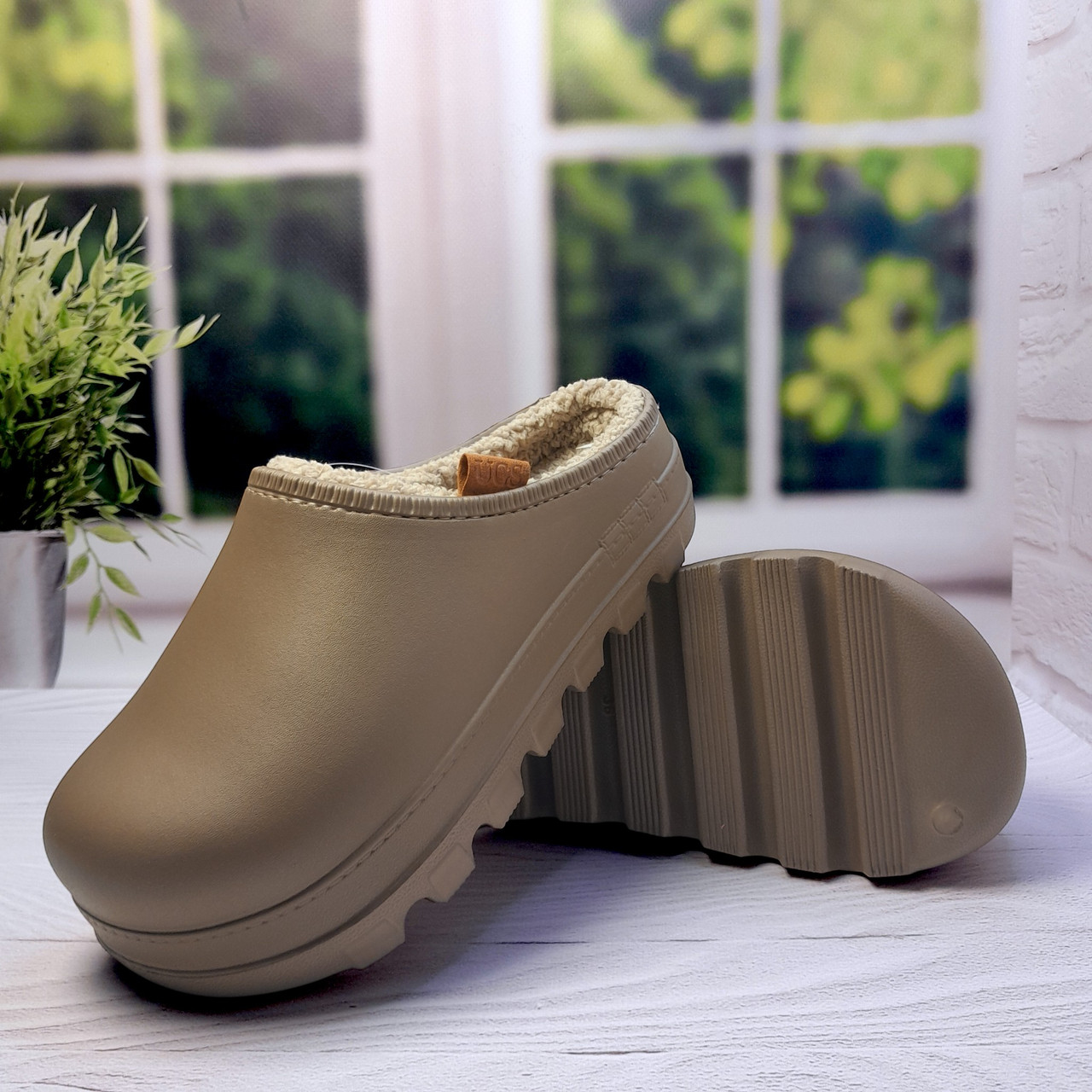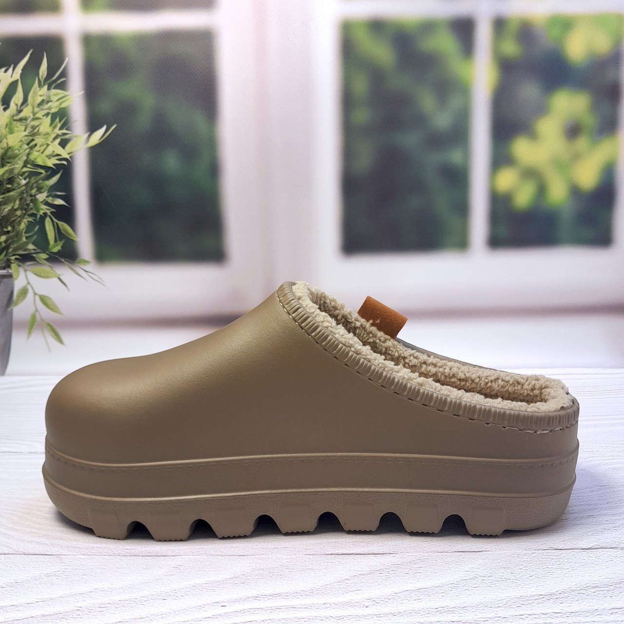Стильні жіночі сабо з утепленням для міста та дому. Виготовлені з легкого матеріалу EVA. Модна висока платформа (3,5-4 см) та міцна ребриста підошва. Внутрішня частина з якісного штучного хутра, що не линяє. Ідеальні для щоденної носіння вдома, прогулянок або роботи.
