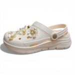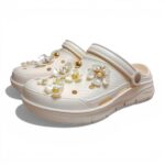 Стильні та зручні жіночі крокси з декоративними джибітсами у формі квітів — по 7 прикрас на кожному кроксі. Яскравий дизайн додає образу індивідуальності та робить модель помітною.