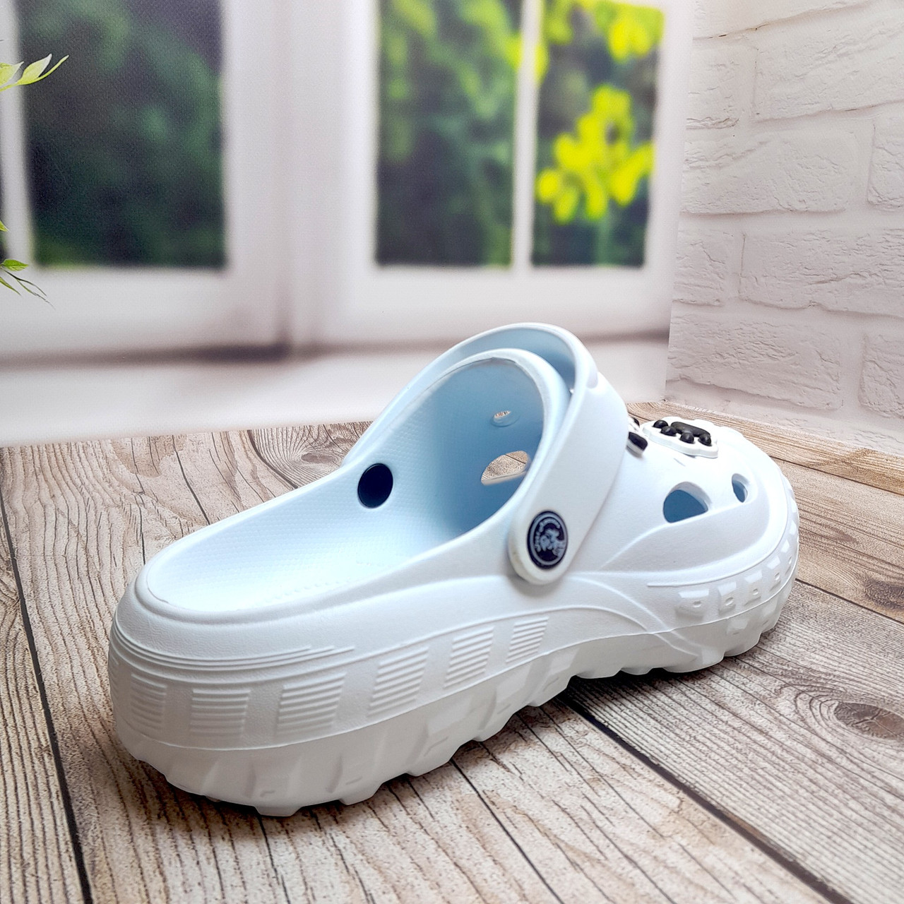 Жіночі крокси з ЕВА — легке та комфортне взуття на кожен день, створене для тих, кому важливі зручність, безпека та практичність. Модель виконана у форматі суцільнолитих жіночих сабо ЕВА, що забезпечує мінімальну вагу, м’якість під час ходьби та повну водостійкість. Посилена рельєфна підошва з глибоким протектором гарантує стійкість і впевнену амортизацію, а численні вентиляційні отвори підтримують постійний повітрообмін.
