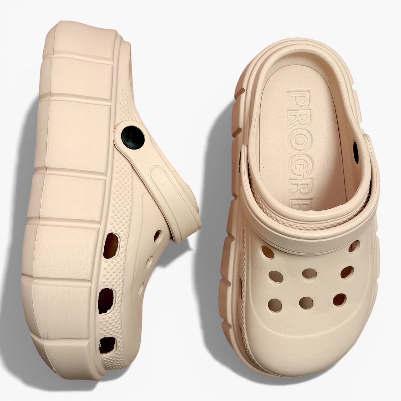 Жіночі крокси на платформі — новинка від української фабрики Progres. Модель має сучасний лаконічний дизайн і масивну платформу, яка додає зросту та забезпечує комфорт при щоденному носінні.