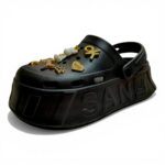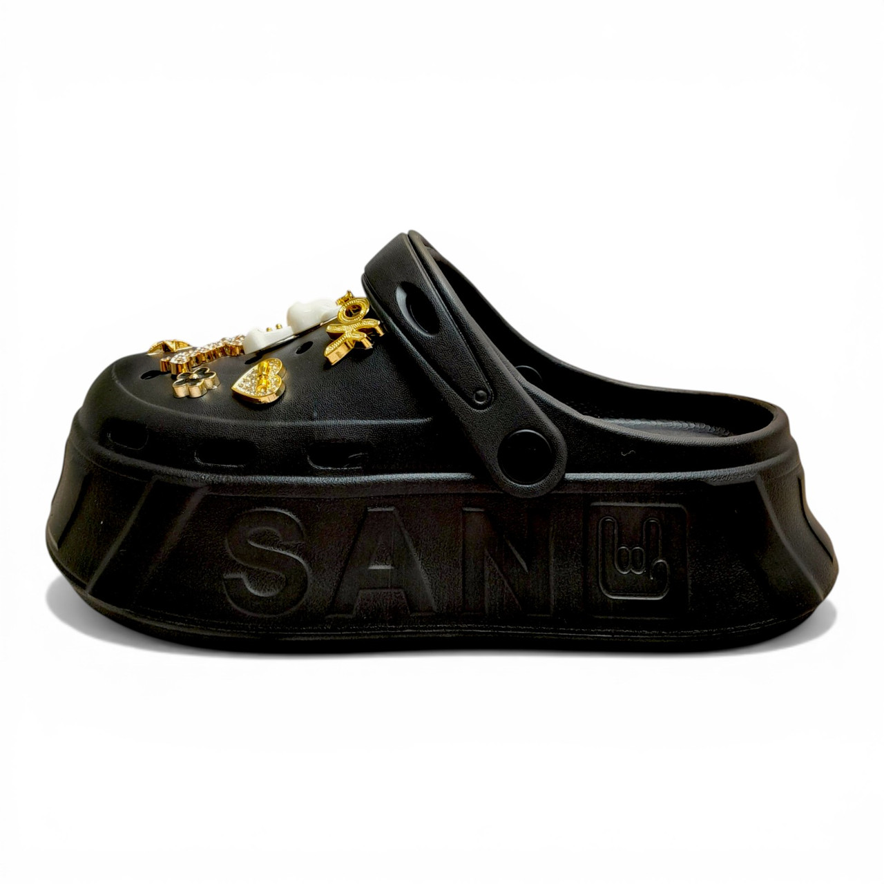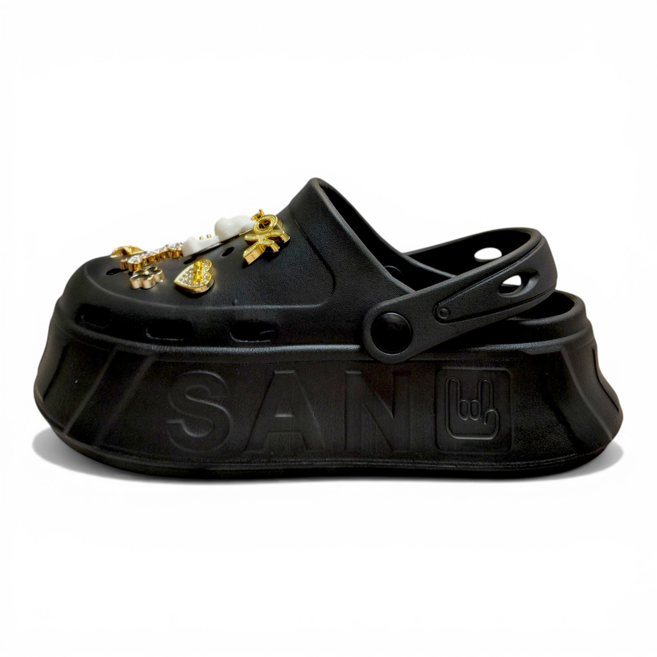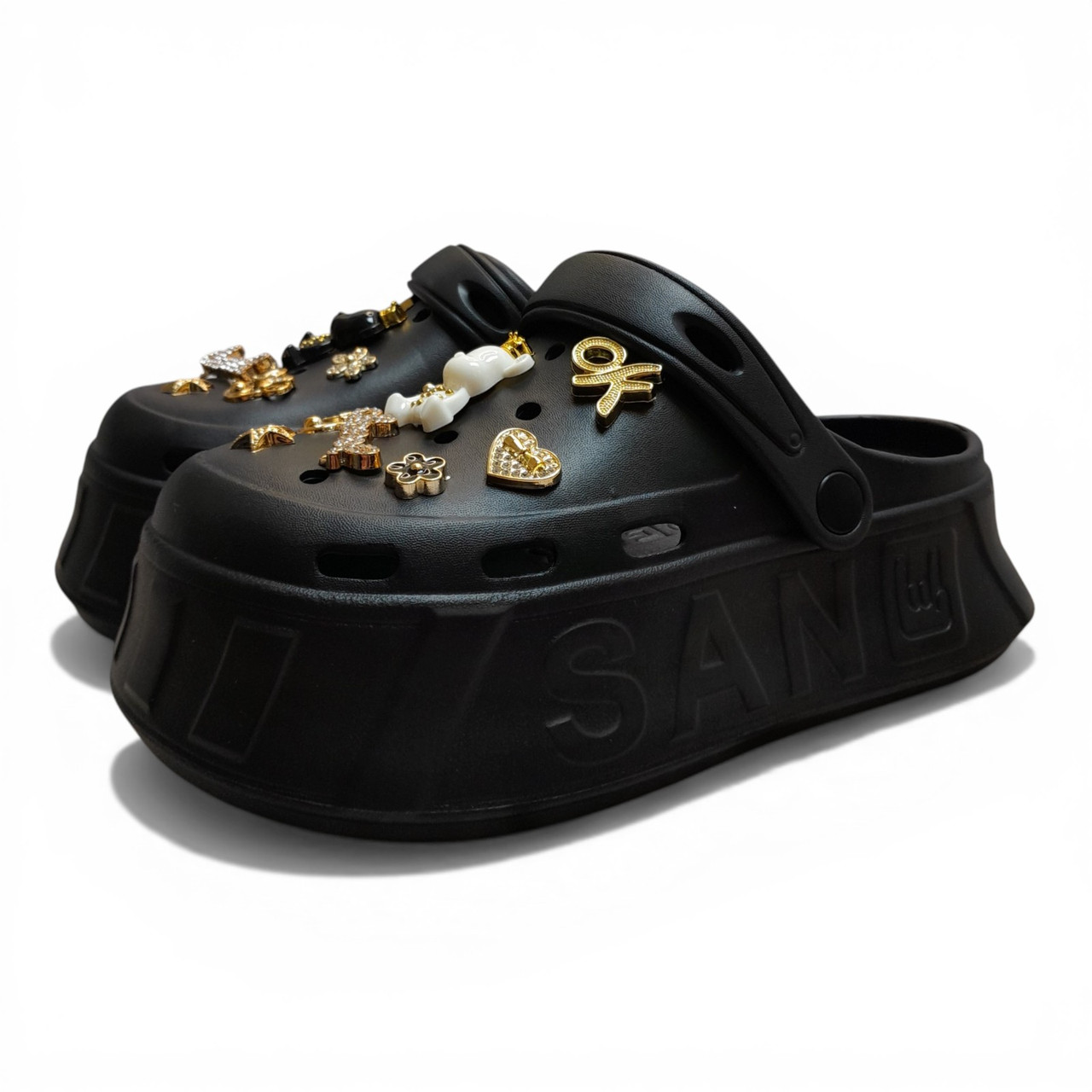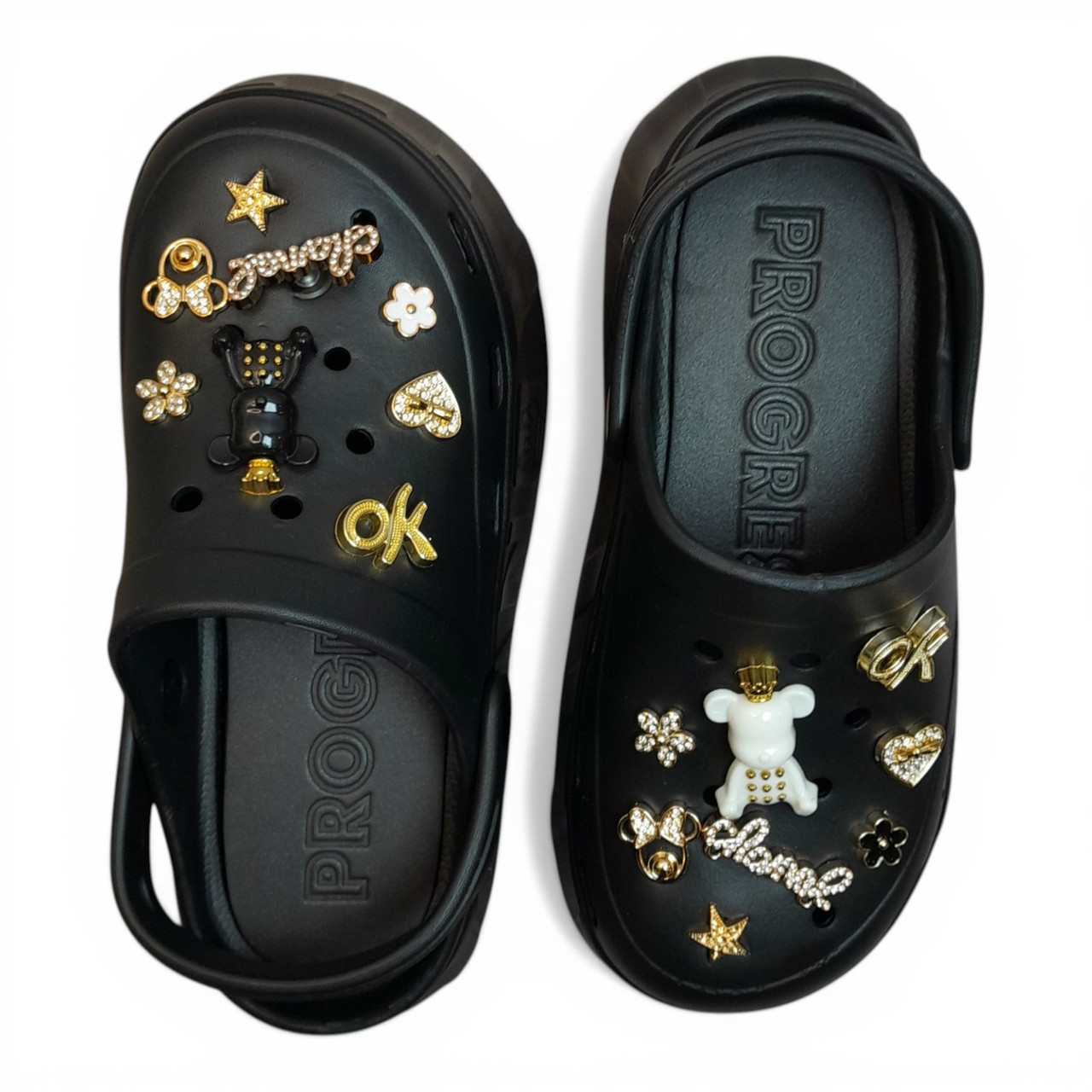 Жіночі крокси Progres на платформі з джибітсами чорні (PG-156/1)