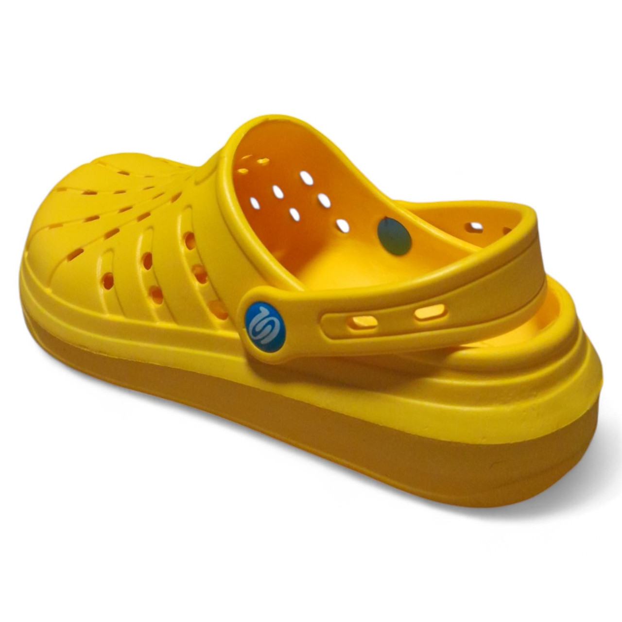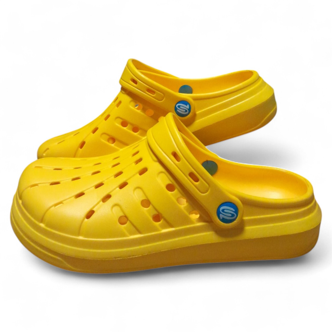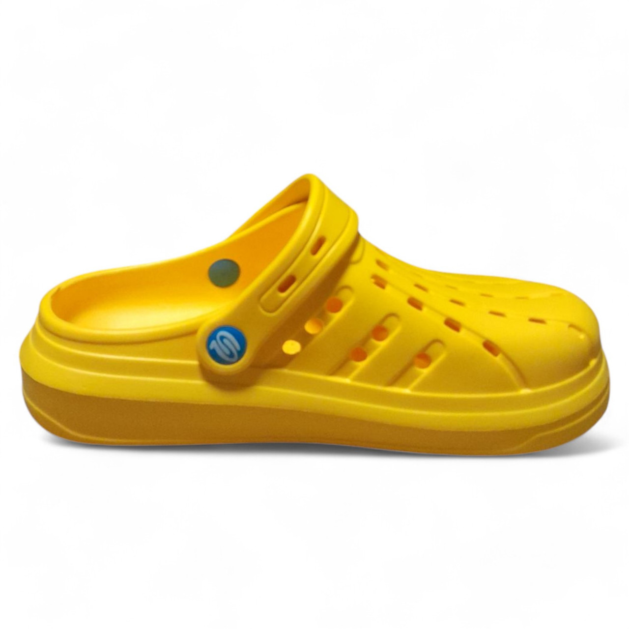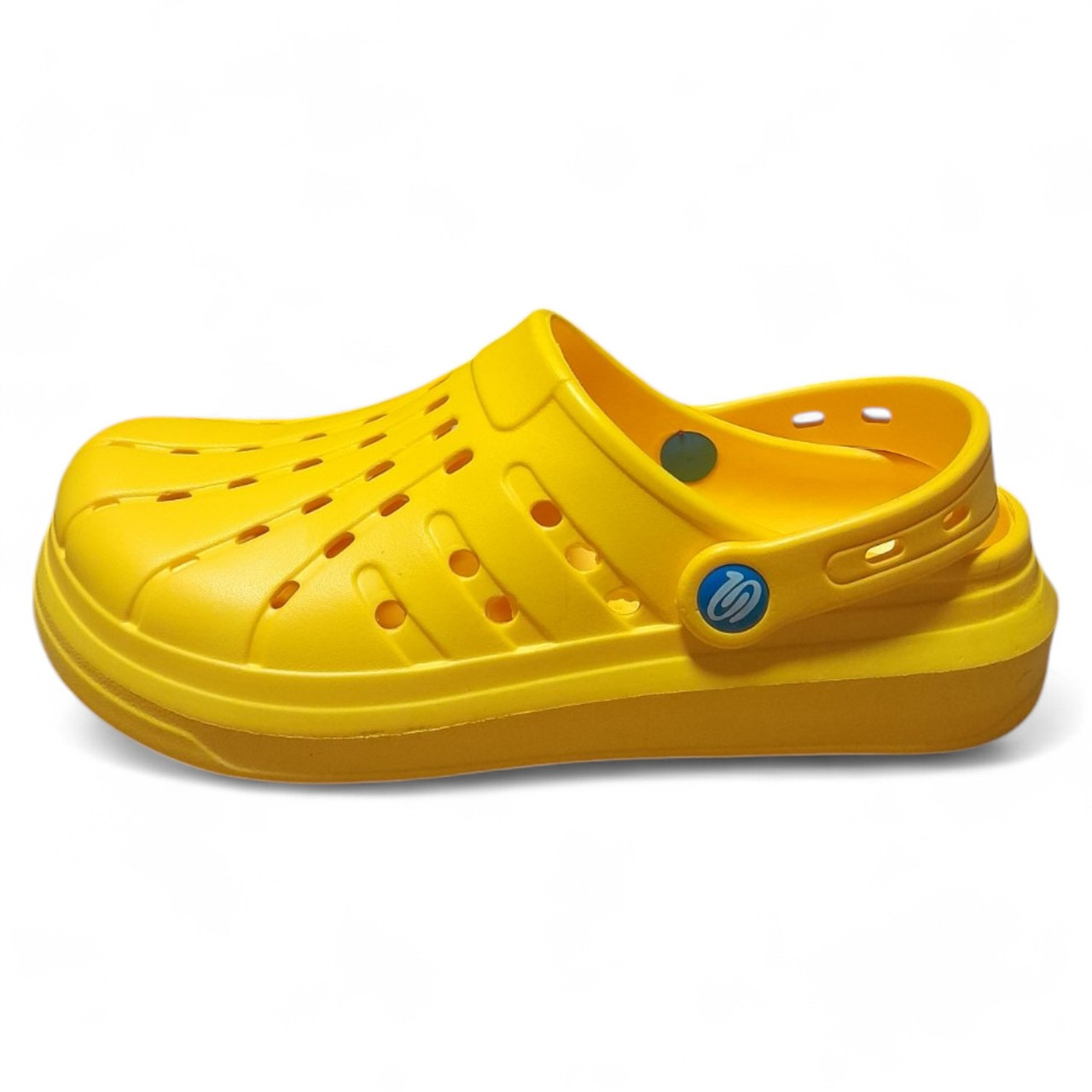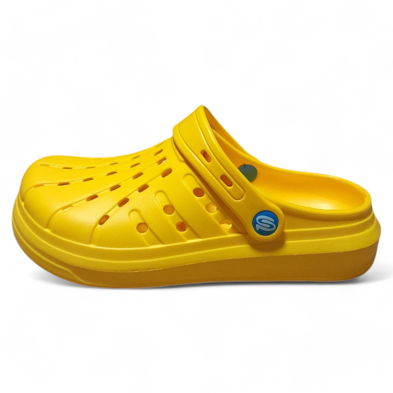 Жіночі крокси Progress жовтого кольору виготовлені з якісного матеріалу EVA (пінка), що забезпечує легкість, м'якість та довговічність. Це взуття стане незамінним супутником для активного відпочинку та повсякденного використання.
