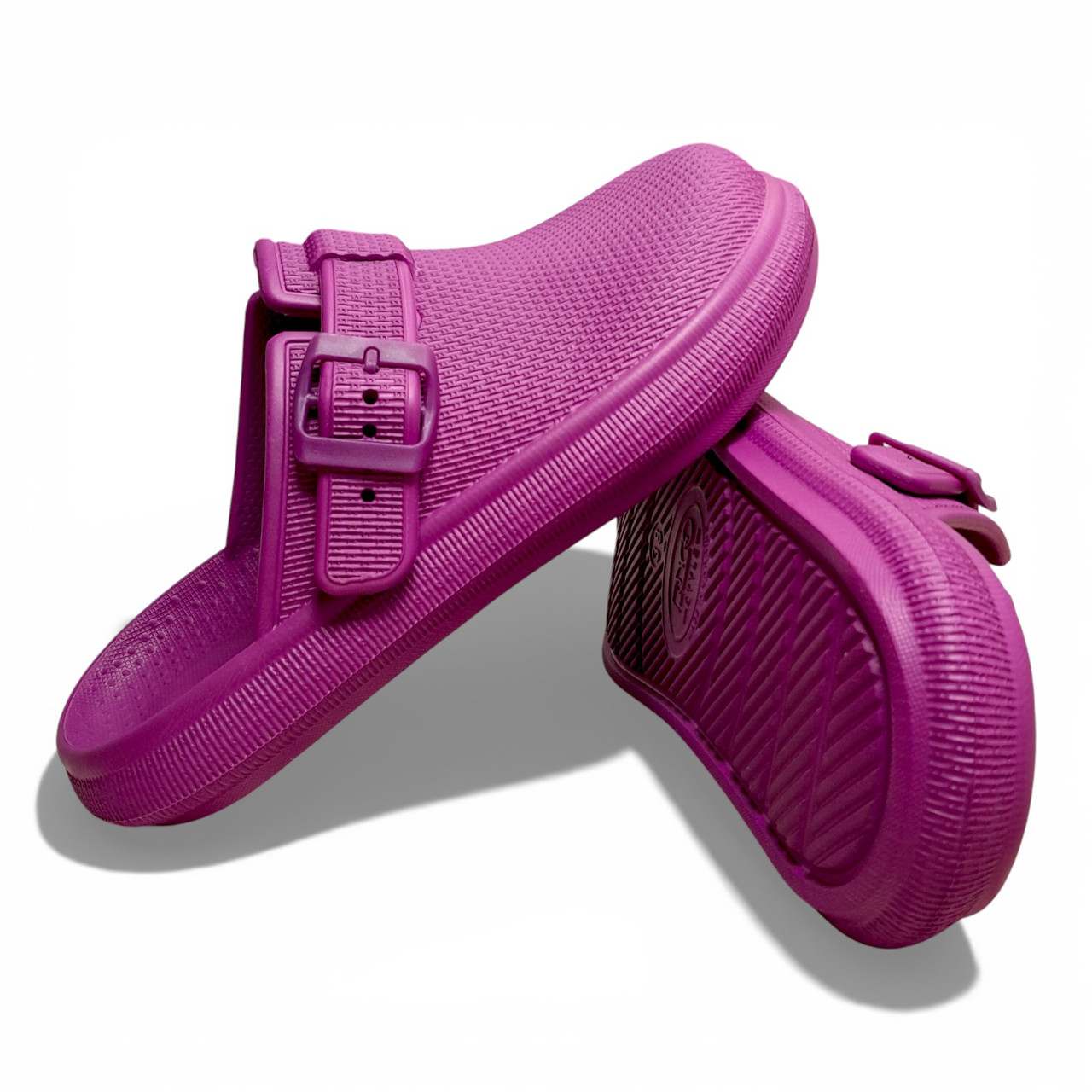 Виготовлені з якісної EVA-піни українського виробництва. Модель оснащена повністю функціональним верхнім ремінцем, який дозволяє регулювати підйом стопи та надійно фіксувати ногу.
