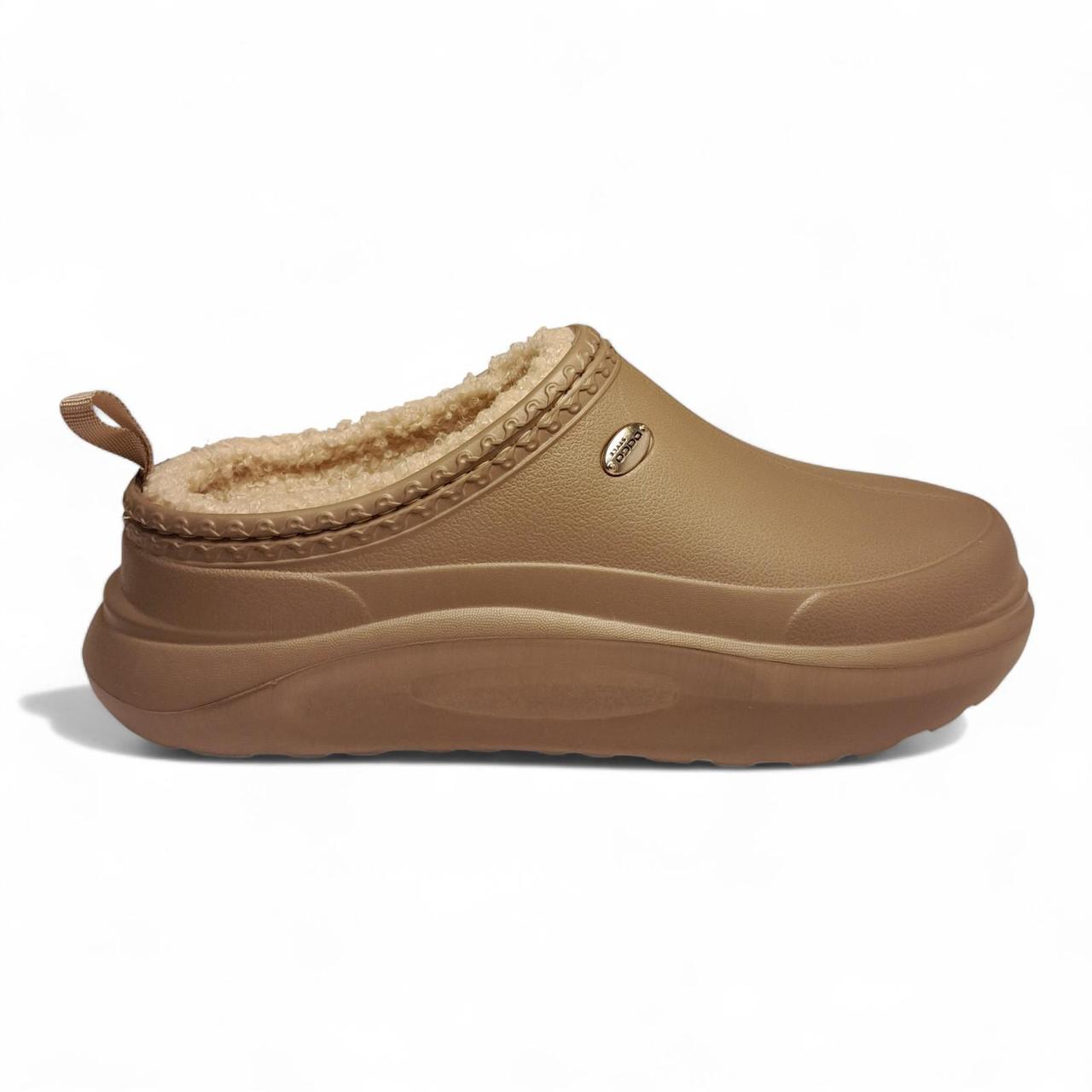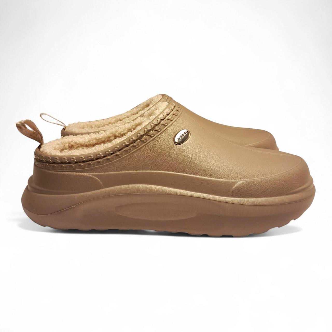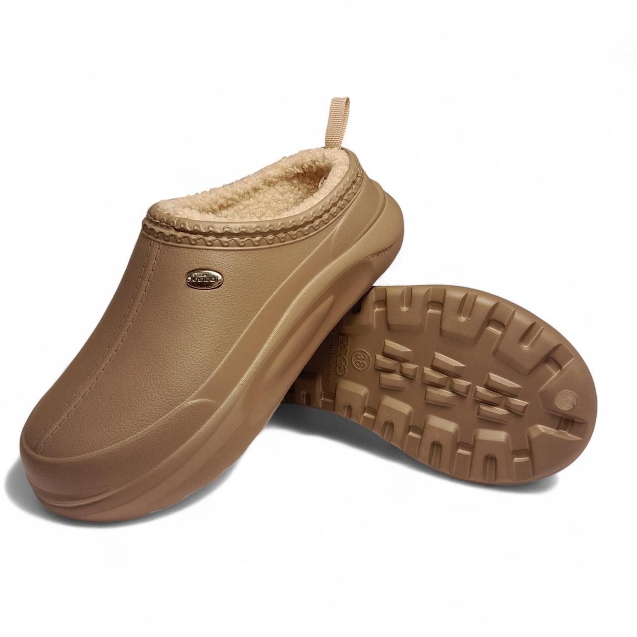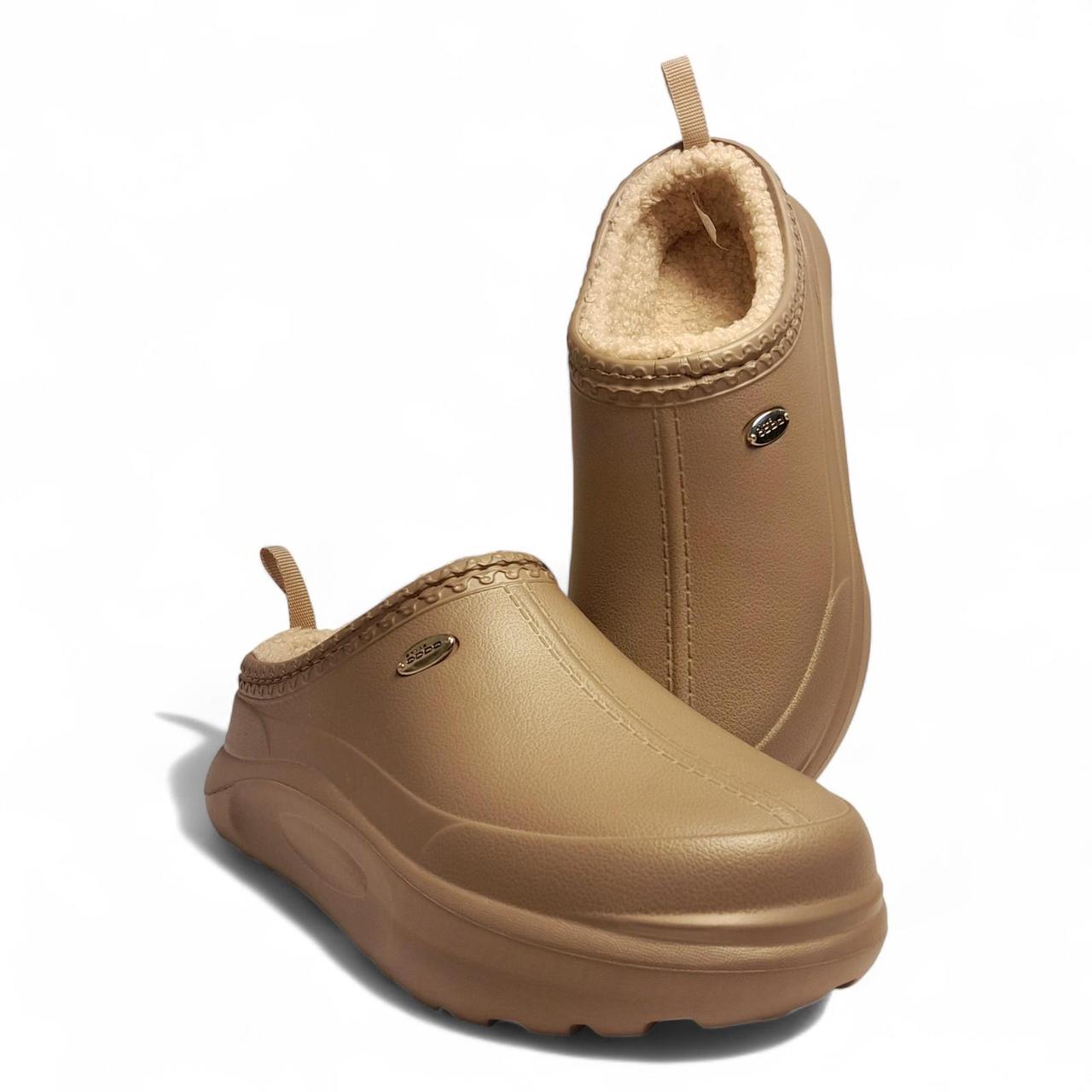 Жіночі утеплені сабо Dago Style бежеового кольору. Практичні зимові калоші без задника з висотою підошви 3 см. Виготовлені з легкого матеріалу EVA, утеплені м'яким хутром.