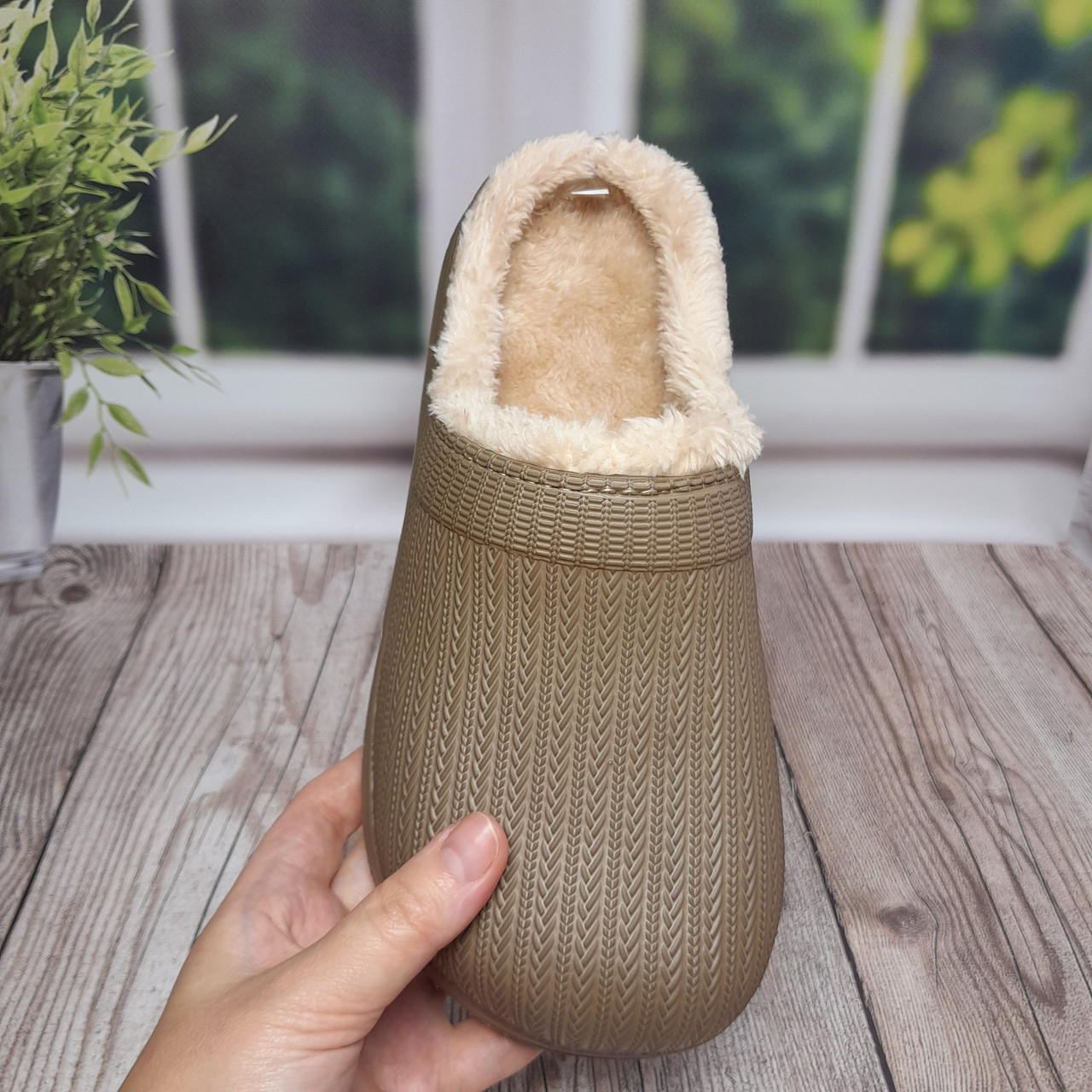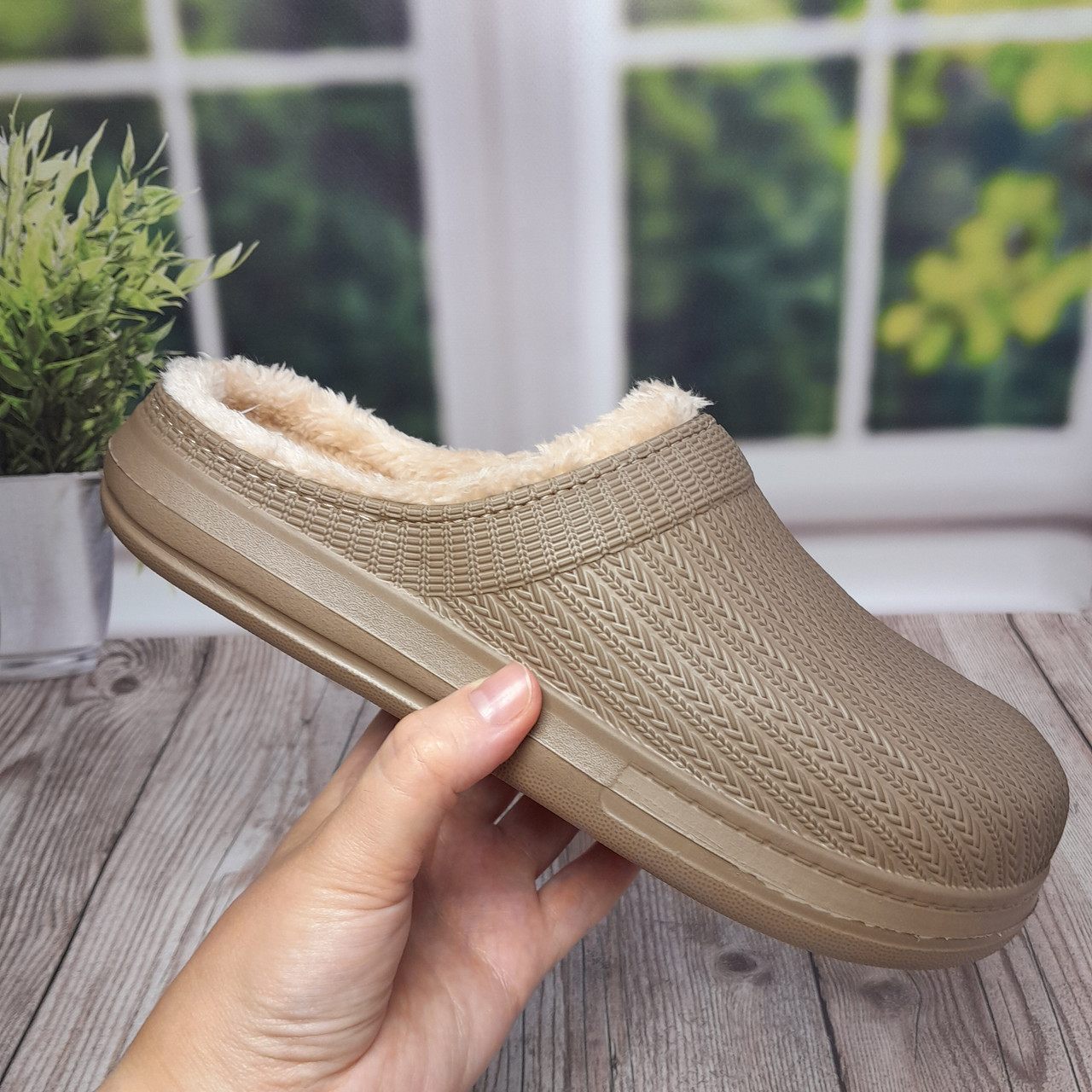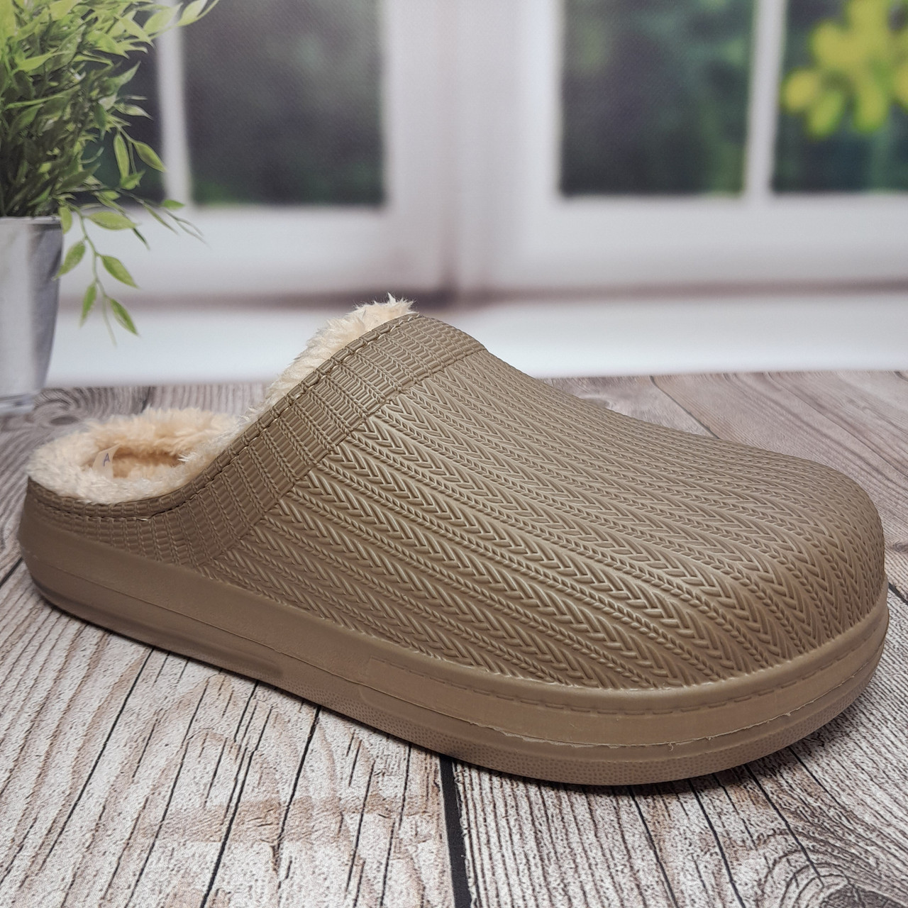 Жіночі утеплені сабо Gipanis темно-бежеві (DH-650)