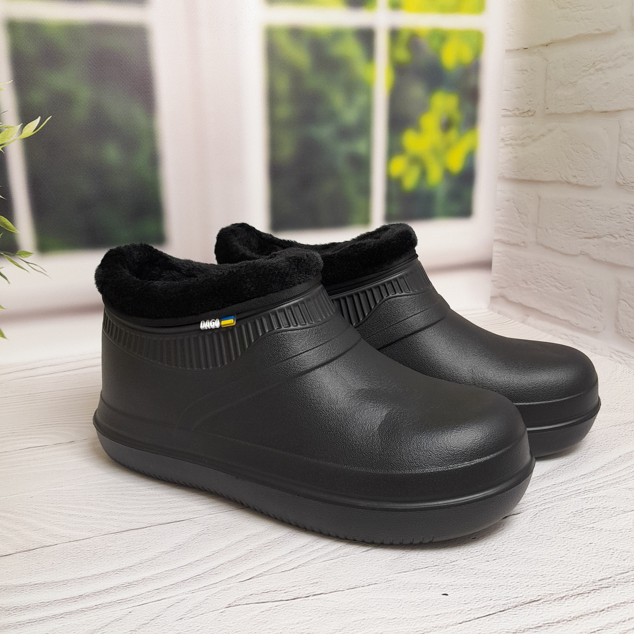 Калоші виготовлені з високоякісної ЕВА пінки, що забезпечує повну водонепроникність та відмінно зберігає тепло. Внутрішня частина утеплена якісним штучним хутром для максимального комфорту в найсуворіші зимові дні.